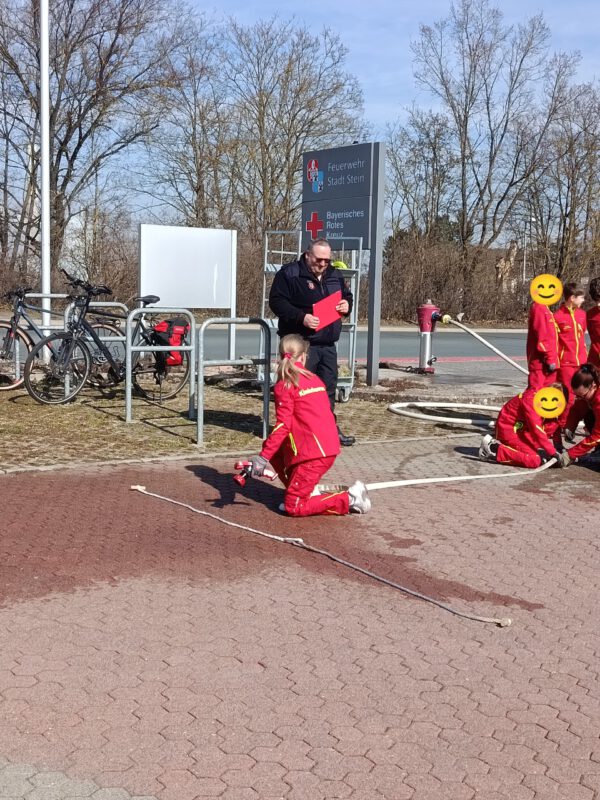 Am Samstag war wieder einmal viel los auf der Feuerwache in Stein – die Kinderfeuerwehr trat zur Abnahme der Kinderflamme an. Die stv. Kreisjugendwartin der Kreisbrandinspektion des Landkreises Fürth , Pia Wunschik, kam nach Stein, um die acht Prüflinge zu beurteilen. In diesem Jahr traten die Kinder je nach persönlicher Situation in den Leistungsstufen eins bis drei an. Der Feuerwehrnachwuchs stellte in jeweils fünf unterschiedlichen Disziplinen sein Können und Wissen unter Beweis. Unter den wachsamen Augen der Betreuerinnen und Betreuer, des ersten Kommandanten Dominik Datz, sowie von Steins Erstem Bürgermeister Kurt Krömer lieferten die Kinder ihre Leistungen souverän ab. In der Stufe 1 musste beispielsweise die persönliche Schutzausrüstung der aktiven Feuerwehrleute erkannt werden und ein Notruf abgesetzt werden. In der Stufe 2 sollten die Kinder unter anderem Gefahrenquellen im Haushalt erkennen und die stabile Seitenlage zeigen. In der dritten und letzten Stufe ging es zum Beispiel um das Verbrennungsdreieck und ums Zielspritzen mit einem D-Schlauch. Am Ende konnte die stv. Kreisjugendwartin allen Teilnehmerinnen und Teilnehmern eine Urkunde und ein Abzeichen für die bestandene Prüfung aushändigen. Auch Bürgermeister Krömer und Kommandant Datz gratulierten herzlich. Sie sprachen dem Betreuerteam und den Eltern ihren Dank aus.