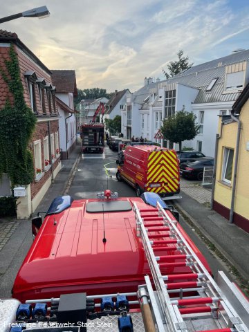 Am heutigen Sonntag kam es zu einer außergewöhnlichen Lage im Steiner Stadtgebiet. Eine Gewitterzelle entlud sich über der Stadt und traf vor allem Unter- und Oberweihersbuch. Die damit verbundenen Wassermassen und der Sturm haben den Einsatzkräften insgesamt 36 Einsätze beschert. Gegen 14:30 Uhr kam der erste Einsatzalarm aufgrund eines umgestürzten Baumes. Kurz danach ging es weiter mit diversen Kellern, die unter Wasser standen, weiter. Diese Einsatzlagen zogen sich durch den ganzen Nachmittag. Eine Besonderheit gab es, als zwei Jungvögel gerettet werden konnten. Es waren insgesamt alle Feuerwehren der Stadt Stein inklusive der Ortswehren Bertelsdorf, Deutenbach, Gutzberg-Sichersdorf und Weihersbuch im Einsatz, um die 36 Unwetterlagen abzuarbeiten. Auch die Unterstützungruppe Örtliche Einsatzleitung (UG ÖEL) des Landkreises Fürth wurde alarmiert, um bei einem eingestürzten Dach in Oberasbach zu unterstützen. Auf dem Weg dorthin kam die Info, dass es sich lediglich um eine herabhängende Dachrinne handelte. Selbst wenn die UG ÖEL gewollt hätte, wäre sie nicht zum Einsatzort gelangt, da die Unterführung an der S-Bahn Unterasbach mit Wasser vollgelaufen war. Sie übernahm dann die Absperrung der Straße. Auch im Fabergut lief die Senke knietief voll Wasser. Gegen 18 Uhr konnten die letzten Einsatzkräfte wieder einrücken.