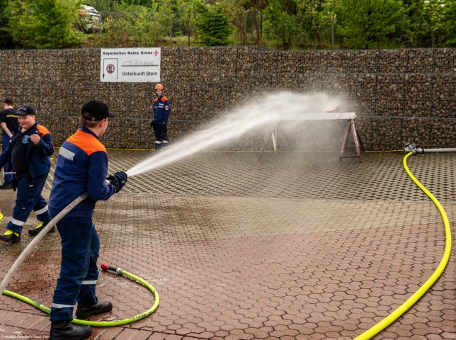 Die Jugendbetreuer und die anwesenden Jugendfeuerwehrleute aus Stein bauten anfangs die praktischen Übungsstationen auf. Als alle versammelt waren, wurden die teilnehmenden Jugendlichen in die unterschiedlichen Übungen eingewiesen. Danach konnte jede Jungendfeuerwehr zusammen mit den Betreuern nach und nach alle Aufgaben absolvieren. Die Leistungsprüfung besteht aus einem theoretischen Teil und mehreren praktischen Übungen. Diese sind nochmals unterteilt in Einzel- und Truppübungen. Nur der praktische Teil wurde heute genauer betrachtet.