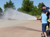 Wie immer hatten die Aktiven ein buntes Potpourri zusammengestellt: So konnten sich die angemeldeten Kinder die Ausrüstung der Einsatzfahrzeuge zeigen und erklären lassen, die begrenzte Sichtweite von Feuerwehrleuten in einem vernebelten Raum erleben, eine Puppe in ein Sprungpolster fallen sehen, mit Schläuchen spritzen, Schlauchboot fahren und auf der Drehleiter in die Vogelperspektive gehen. So hatten die jungen Gäste auf der Feuerwache nochmal einen erlebnisreichen Tag vor dem Ende der Ferien – von dem sie für den ersten Schultag viel zu erzählen mitnehmen konnten.