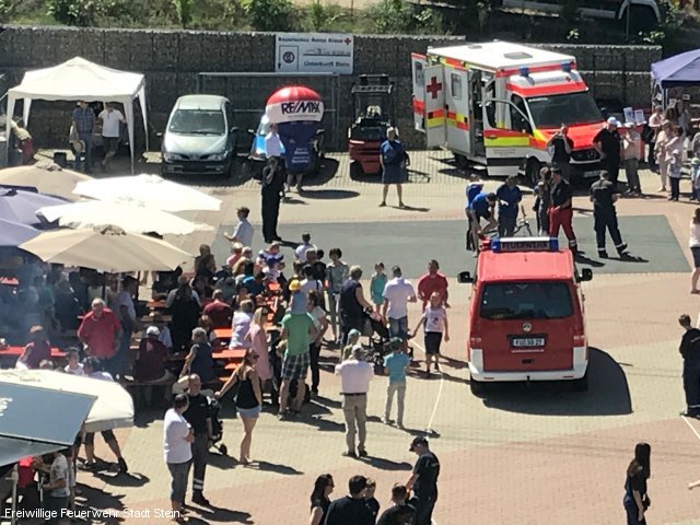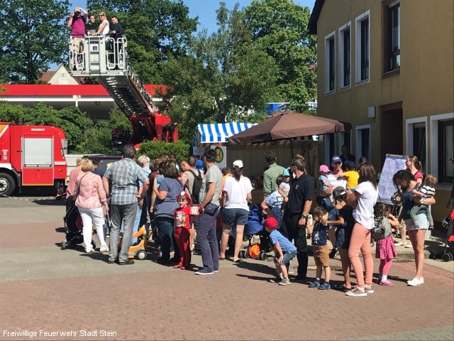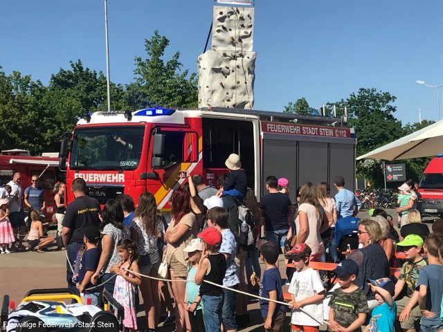 Bei strahlendem Sonnenschein gab es für unsere Besucher am Stadtfest viel zu sehen. Von Kletterturm und Hüpfburg, über die neuen Fahrzeuge und die Drehleiter, bis hin zu Rundfahrten, war alles geboten, um einen kurzweiligen Nachmittag zu verbringen. Höhepunkte waren die zahlreichen Vorführungen, bei denen die Zuschauer einen Eindruck von der Arbeit von Rettungsdienst und Feuerwehr bekommen konnten.