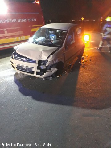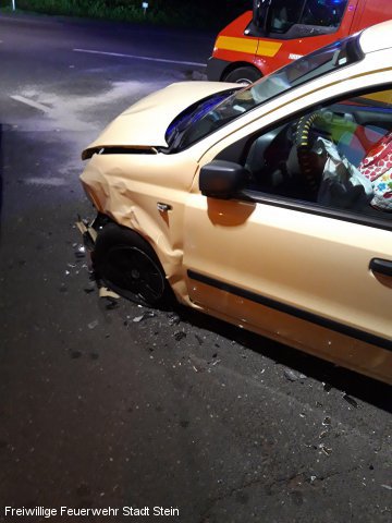 Am späten Montagnachmittag wurden die First Responder der Feuerwehr Stein zu einen Verkehrsunfall auf der B14 bei Gutzberg alarmiert. Dort waren ein Transporter und ein PKW kollidiert. Wenige Minuten nach der Alarmierung kamen die First Responder kurz nach der Polizei am Unfallort an und erkundeten die Lage. Es stellte sich heraus, dass vier Personen verletzt waren und versorgt werden mussten.