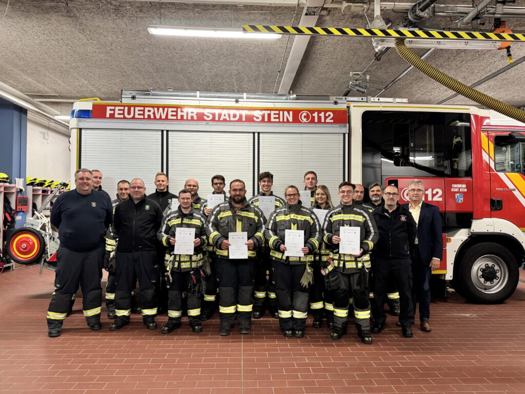 Die Feuerwehr Stein gratuliert den Prüflingen zum erfolgreichen Abschluss und wünscht alles Gute bei allen Einsätzen.